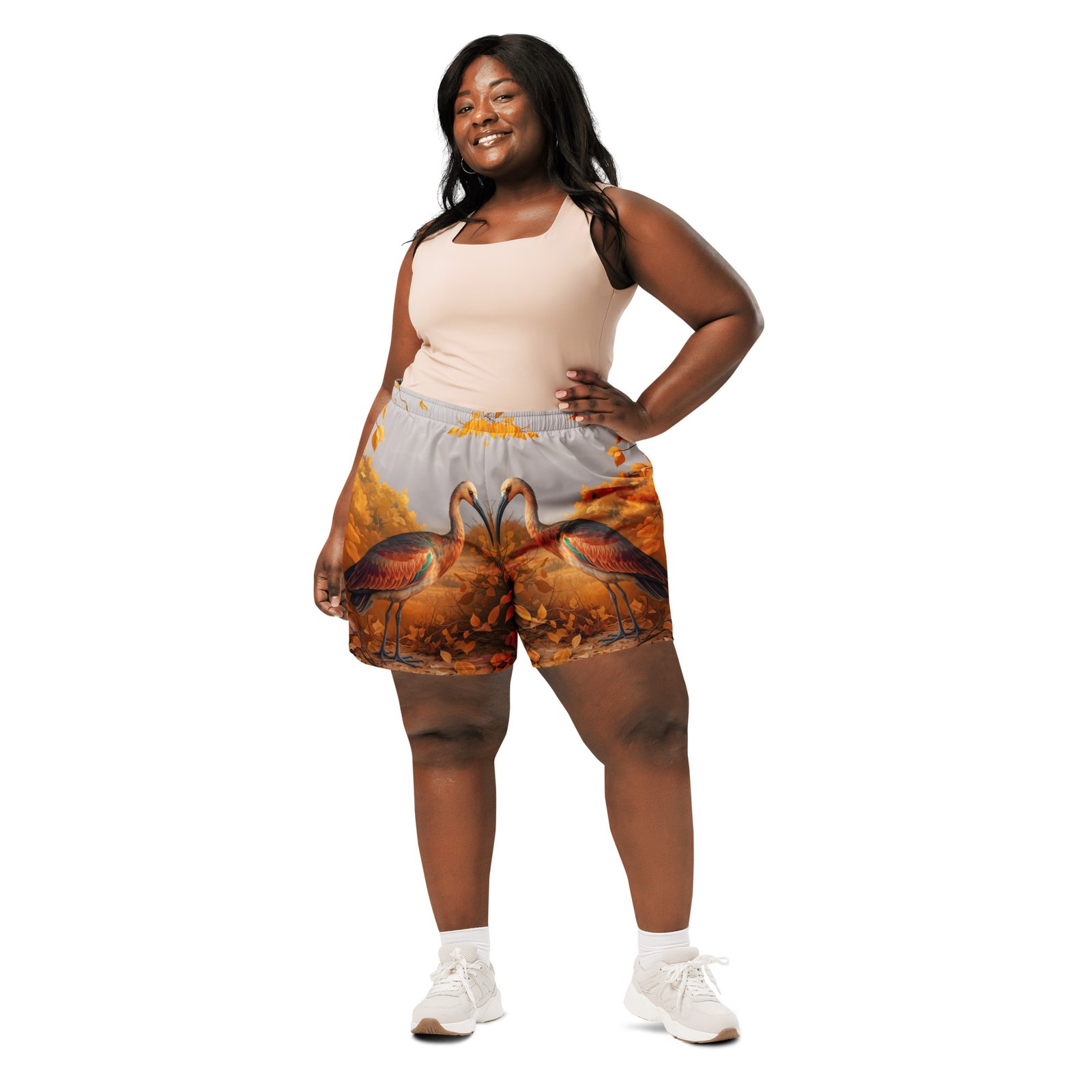 Autumn Ibis: Design 01 – Unisex Athletic Long Shorts