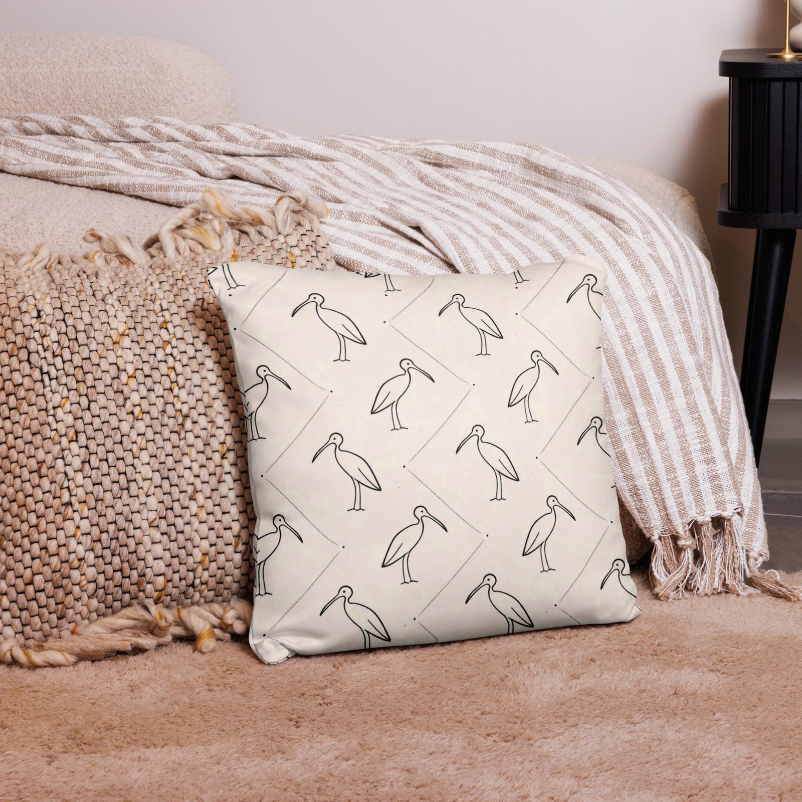 Ibis Line Art Grid – Pillow Case – Cream & Black