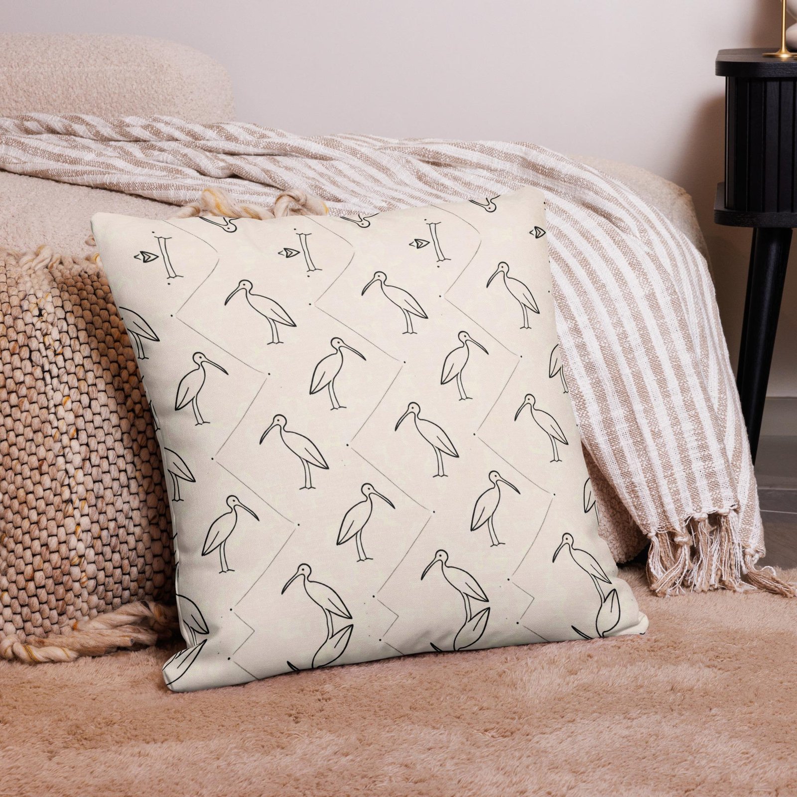 Ibis Line Art Grid – Premium Pillow – Cream & Black