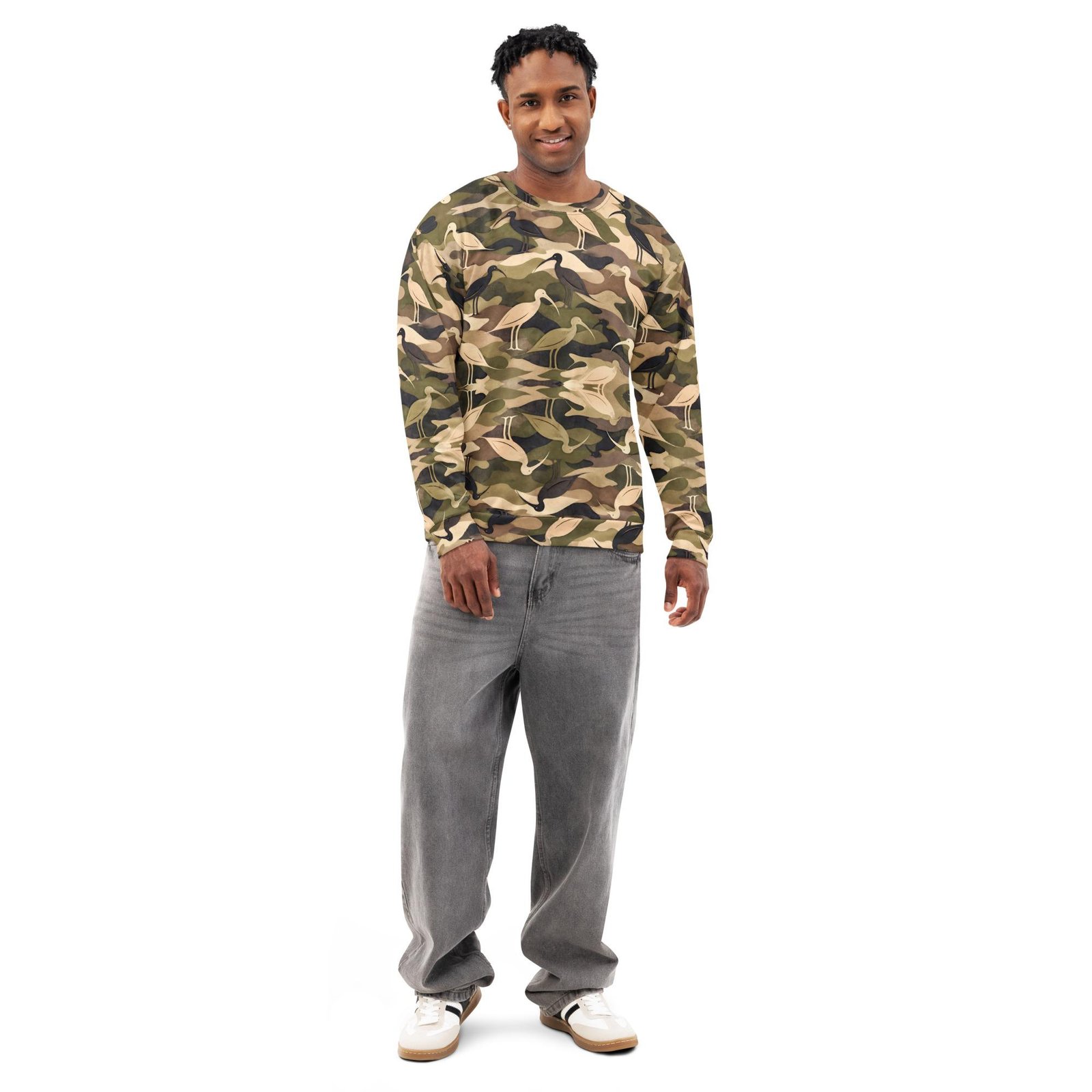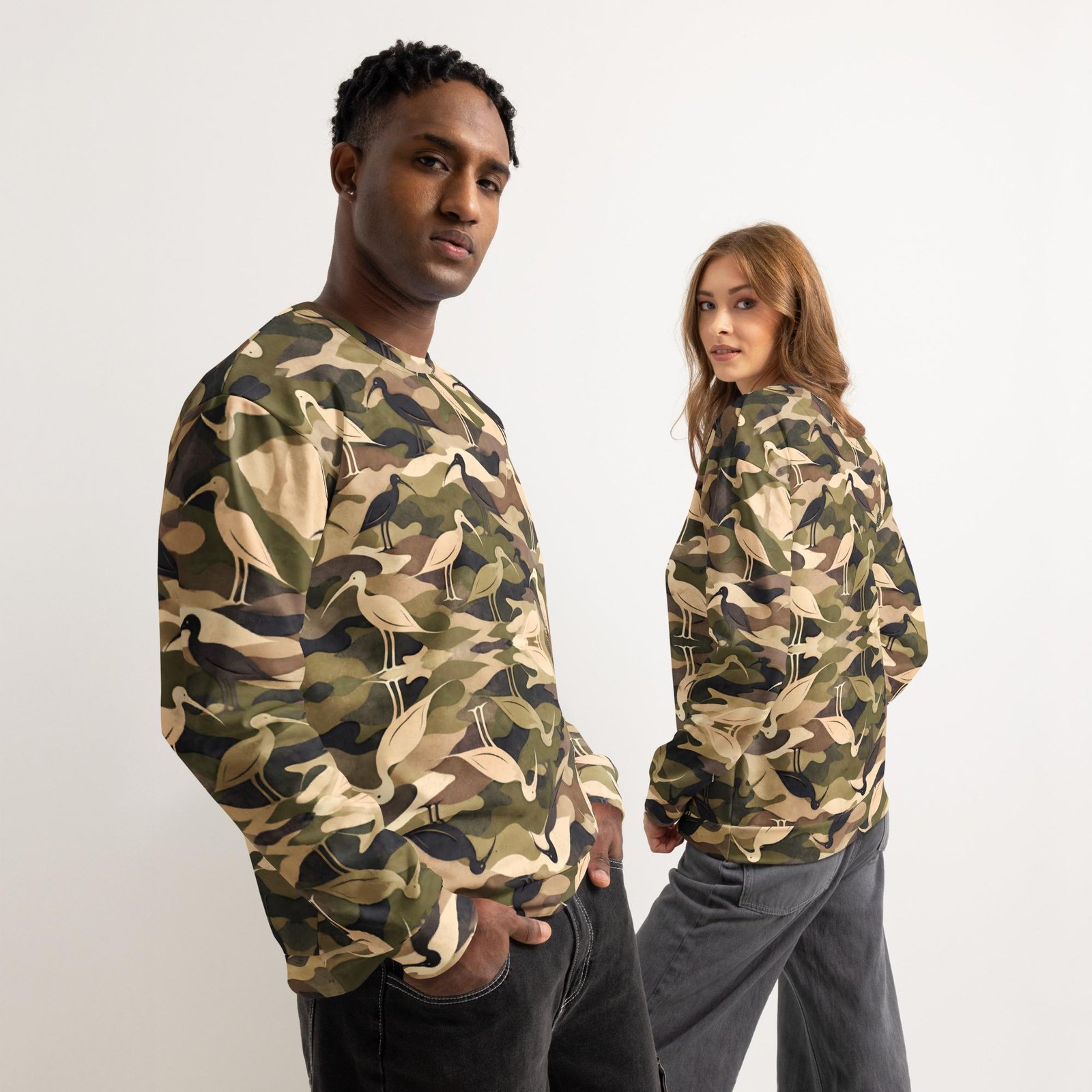 Modern Camouflage Ibis – Unisex cotton sweatshirt – Olive, Khaki & Black