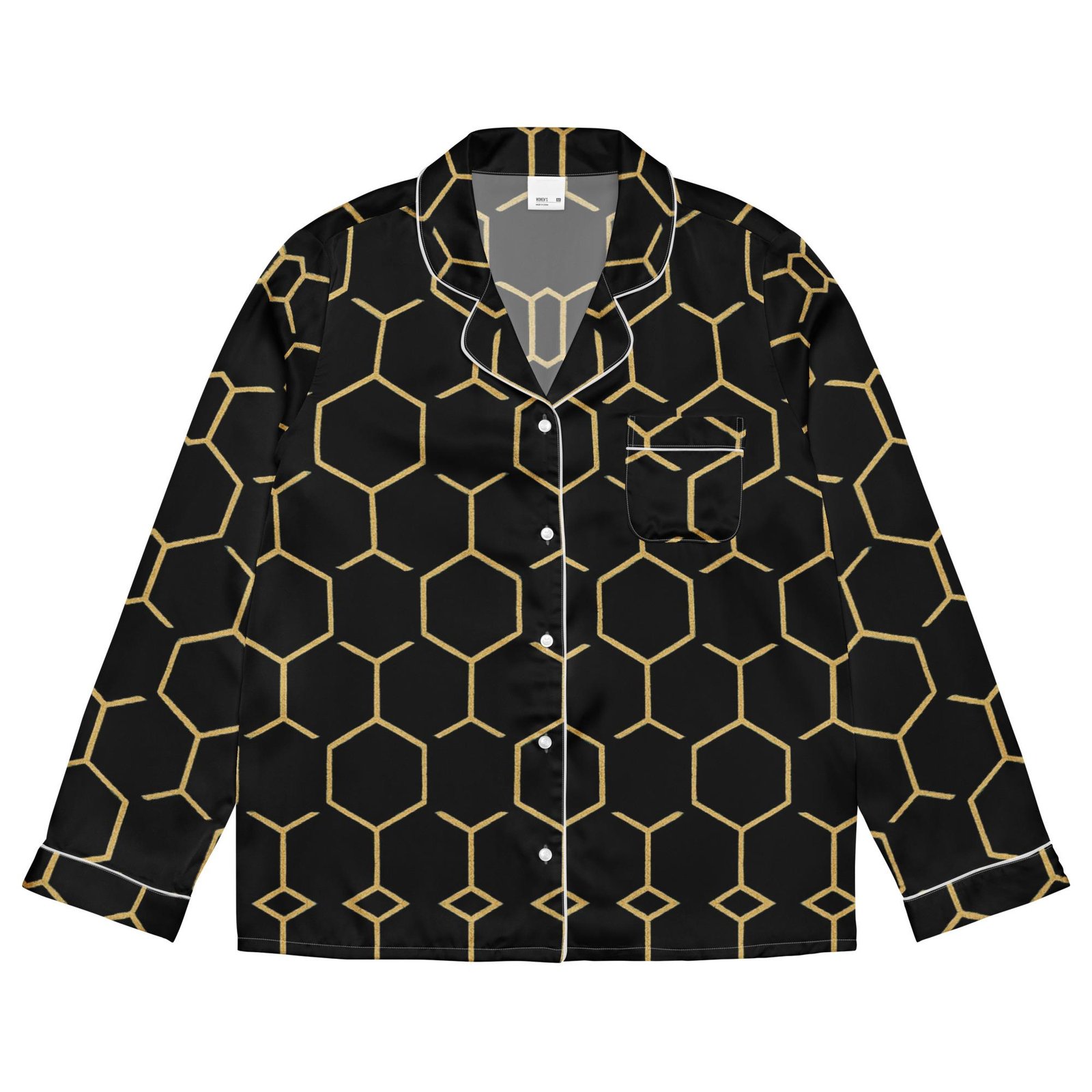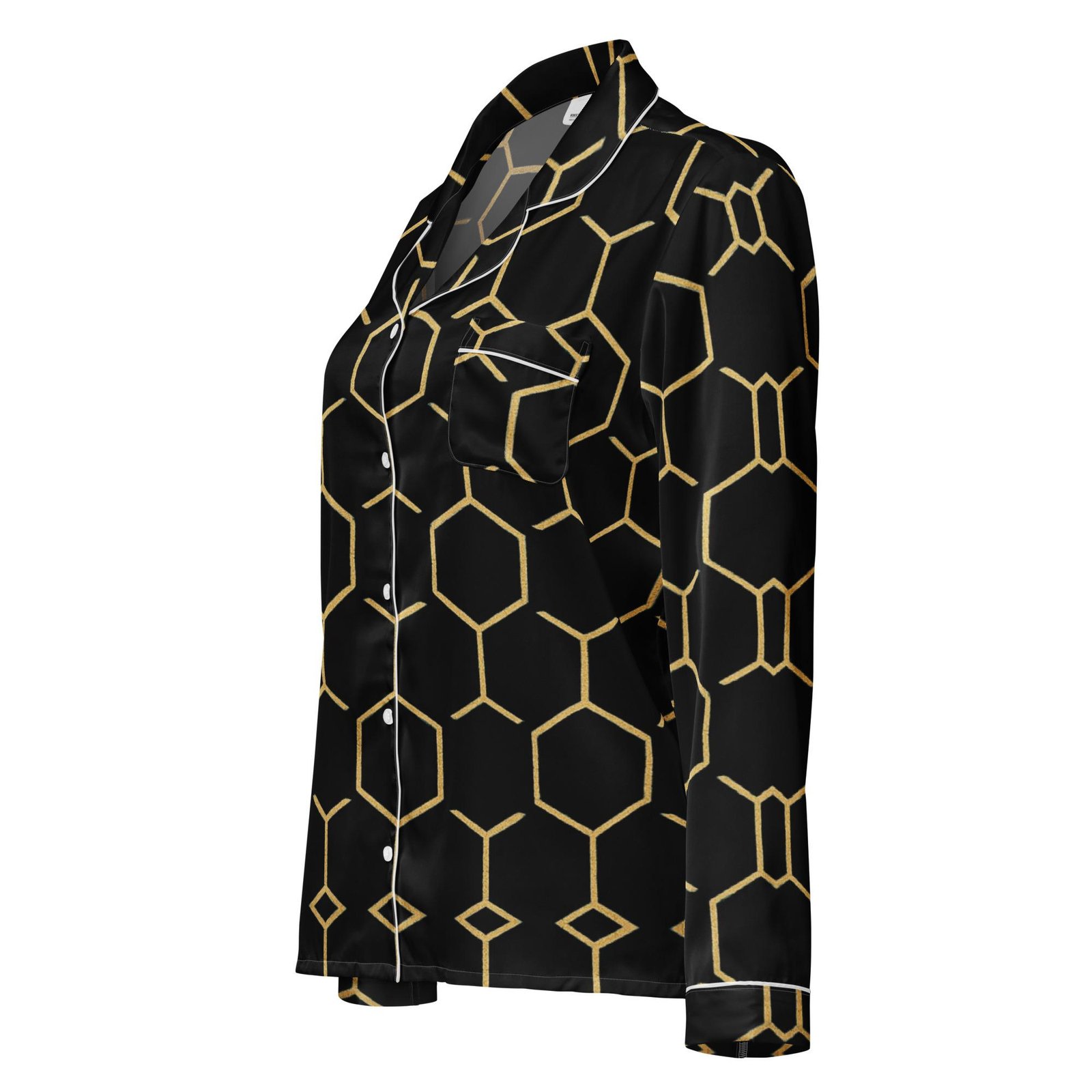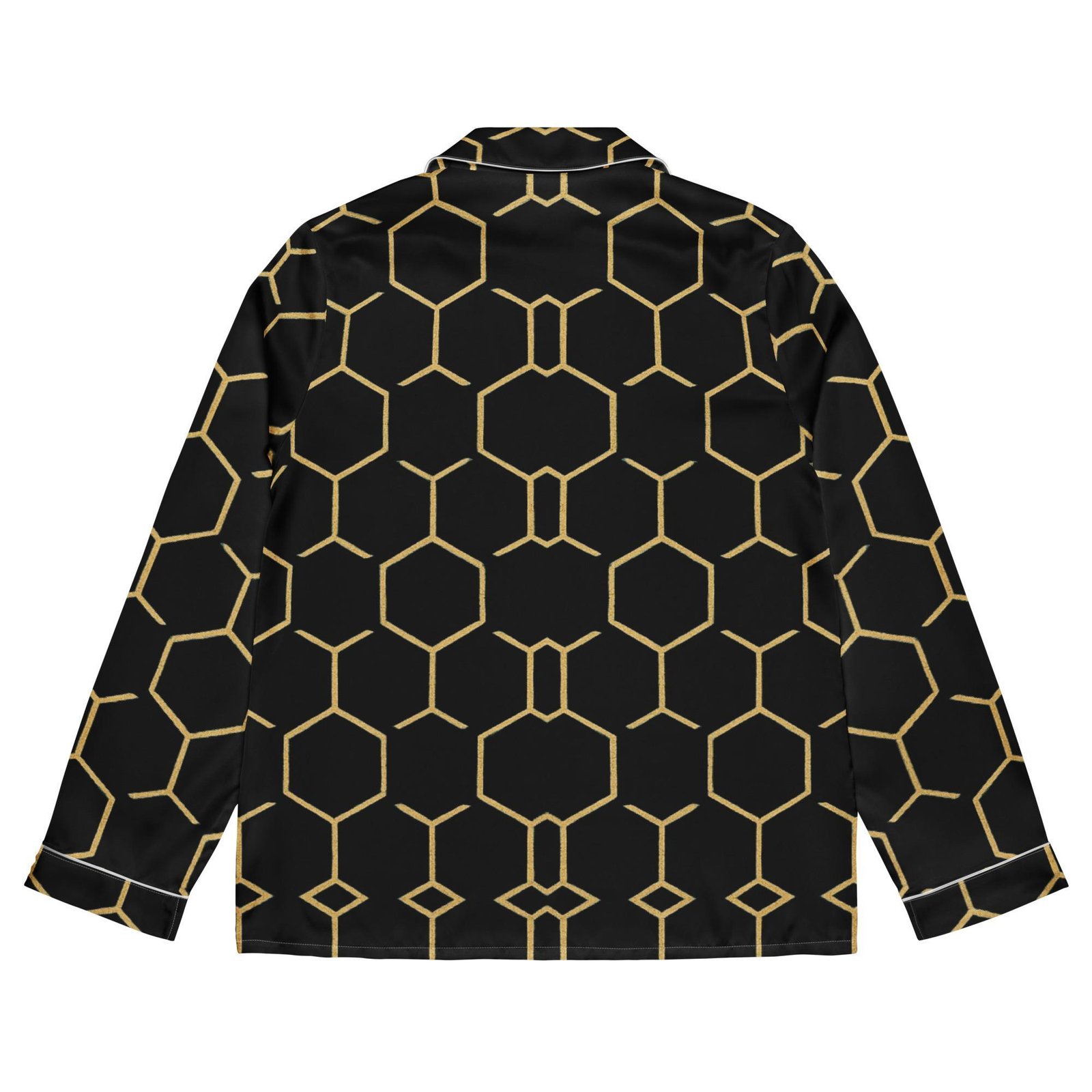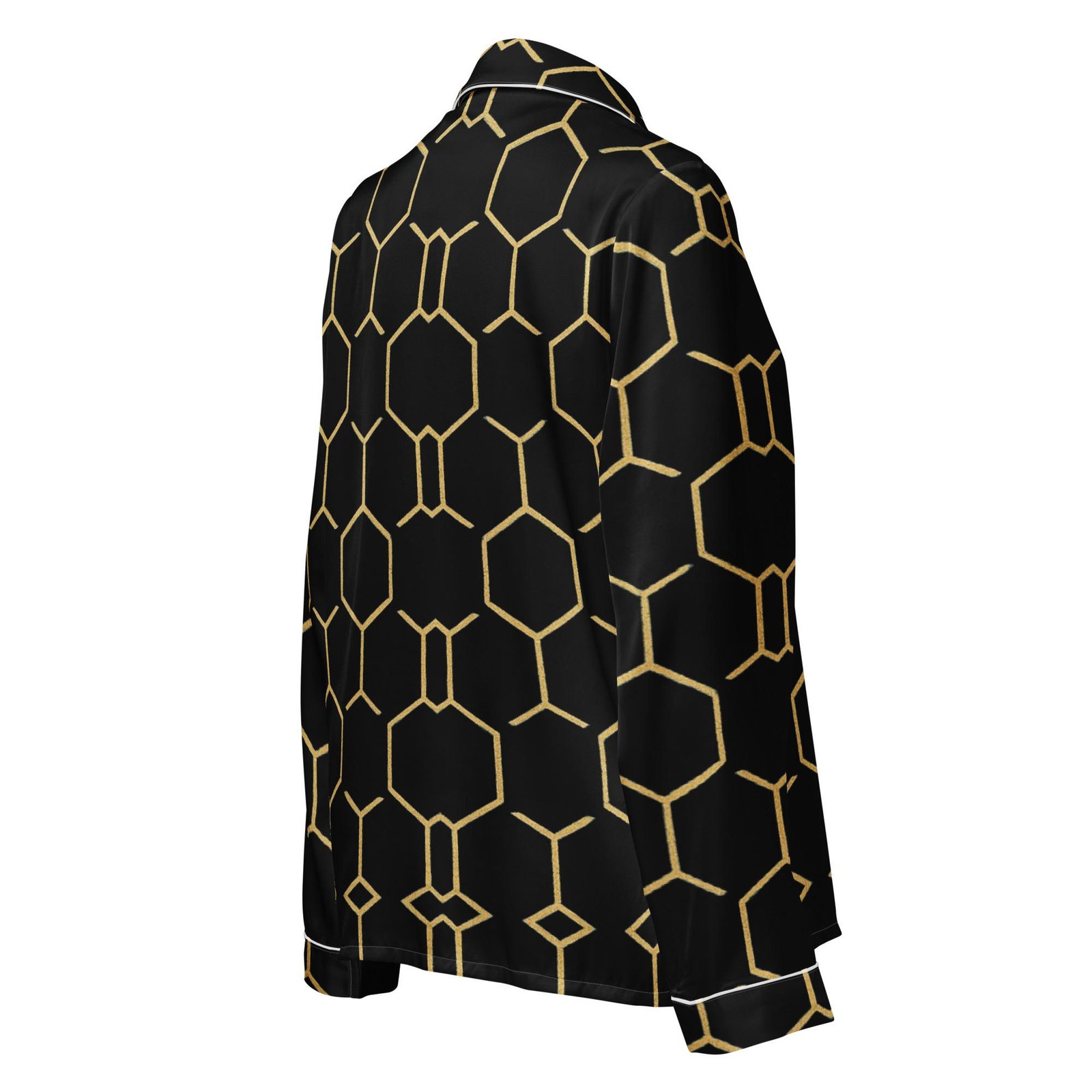 TALISHÉN: Steel Spine Hex Pattern – Women’s long sleeve pajama top – Black & Gold