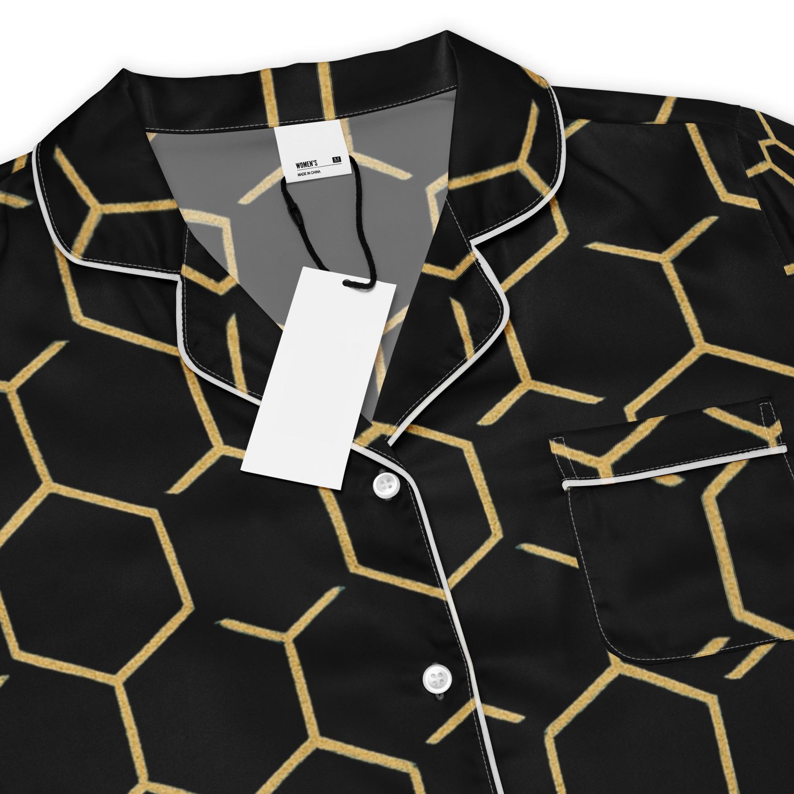 Be the first to review “TALISHÉN: Steel Spine Hex Pattern – Women’s long sleeve pajama top – Black & Gold” Cancel reply
