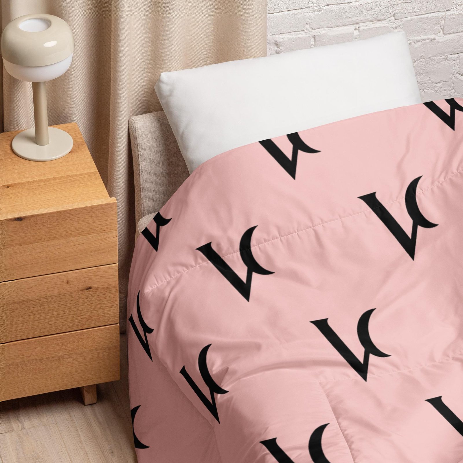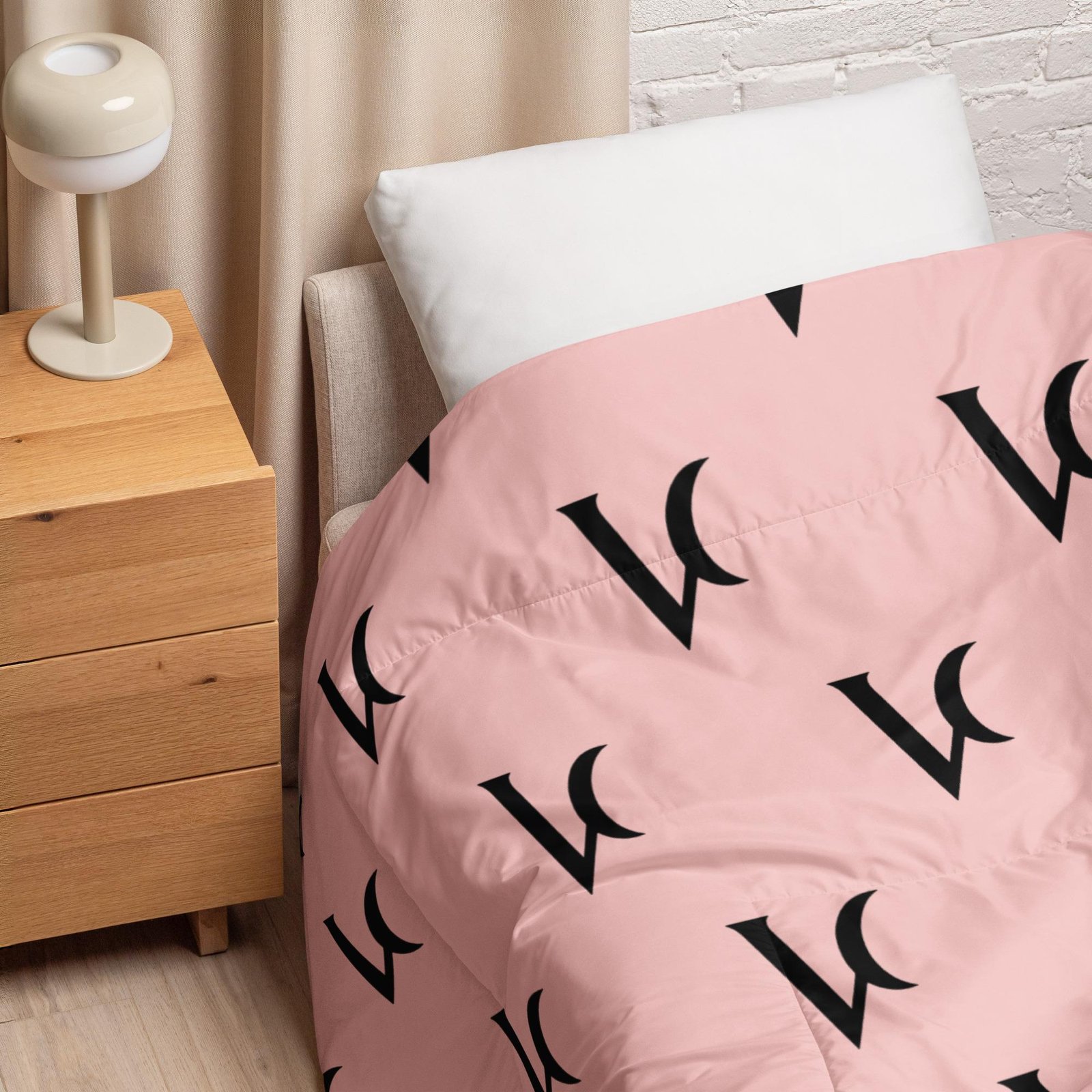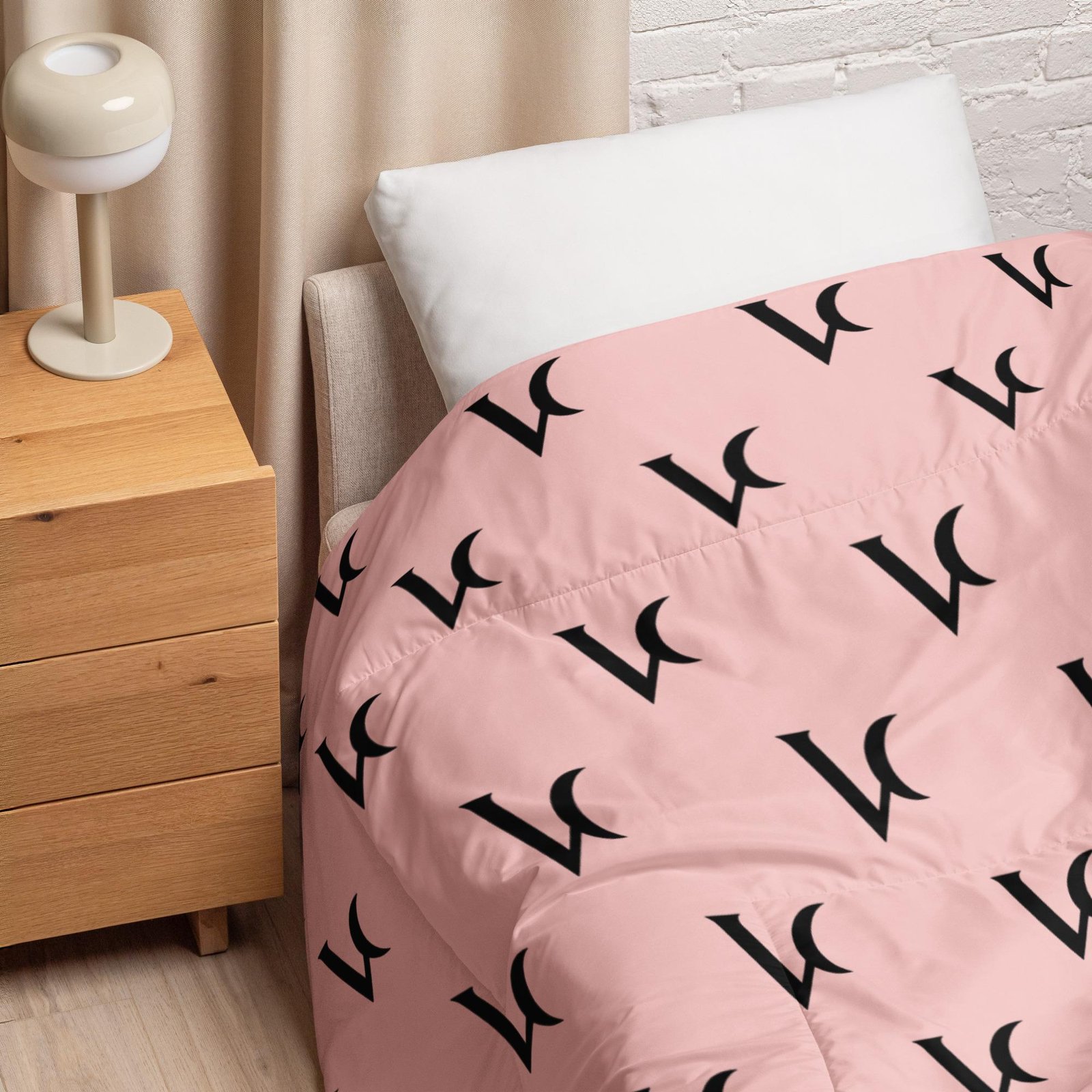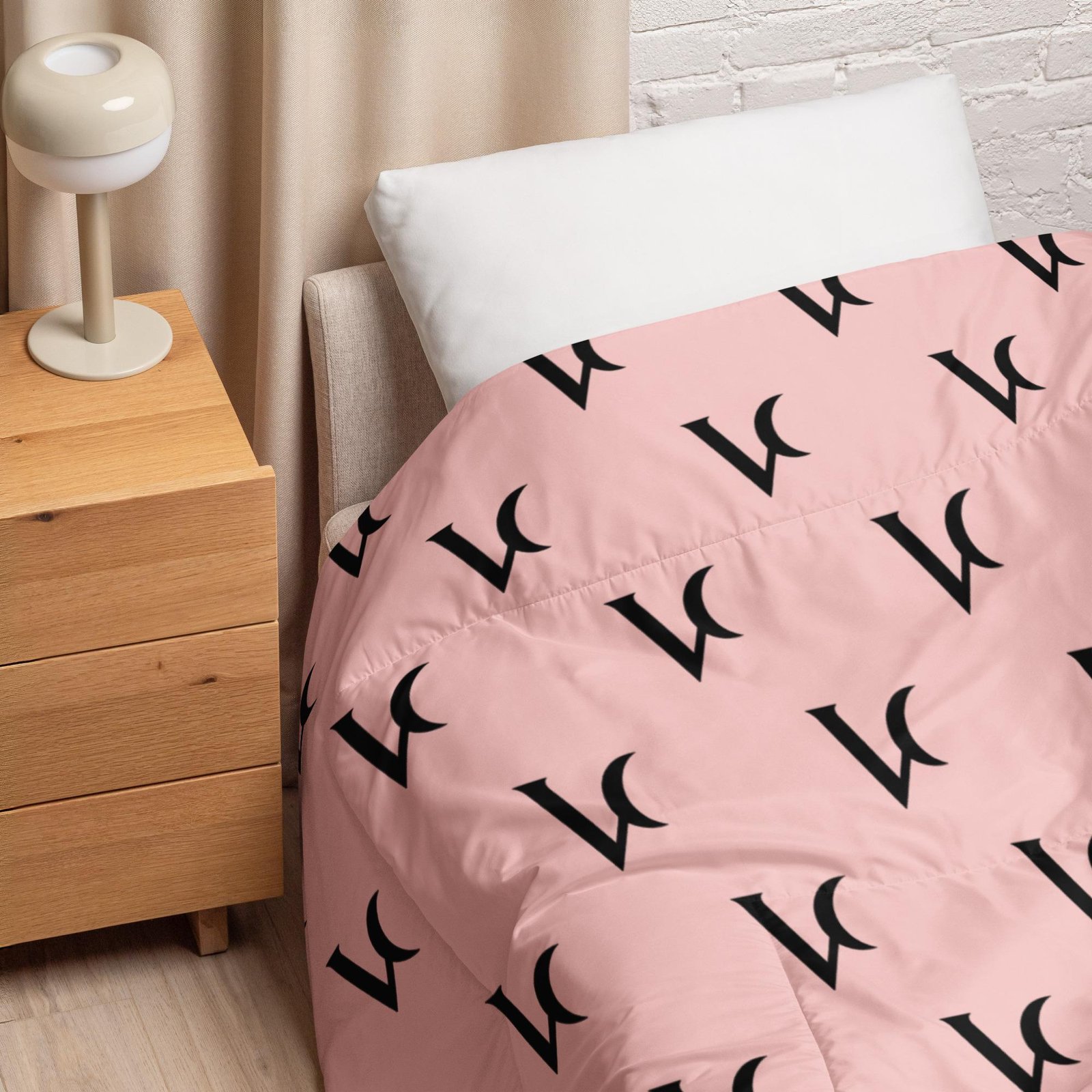 Varéluna: The VARÉ Crest™ – Comforter – Light Pink & Black